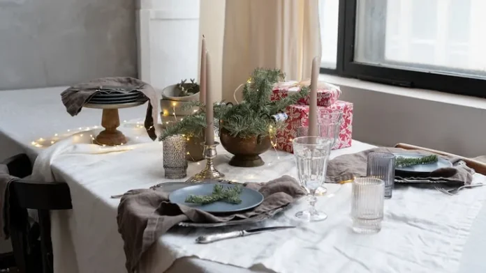 As a devoted minimalist, I’m delighted to see that we’ve reached a point of more simple and refined festive decorations. In all honesty, all you need to create a warm and welcoming atmosphere is ambient lighting, an aromatic candle, and good company! Although this may be a nice approach for your everyday dinners, I understand that we all like to go the extra mile for our friends and family. Let’s see how we can make this happen in a simple and elegant manner without breaking the bank!