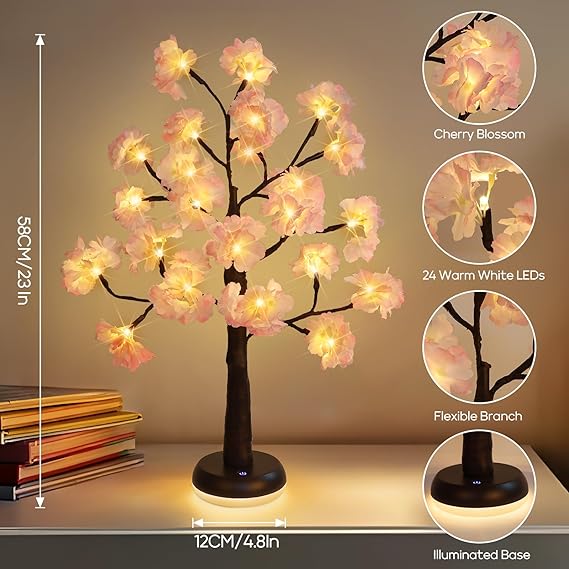 Our upgraded desktop cherry blossom light now includes an illuminated base. It can emit a warm light on its own or complement the tree lamp’s glow!